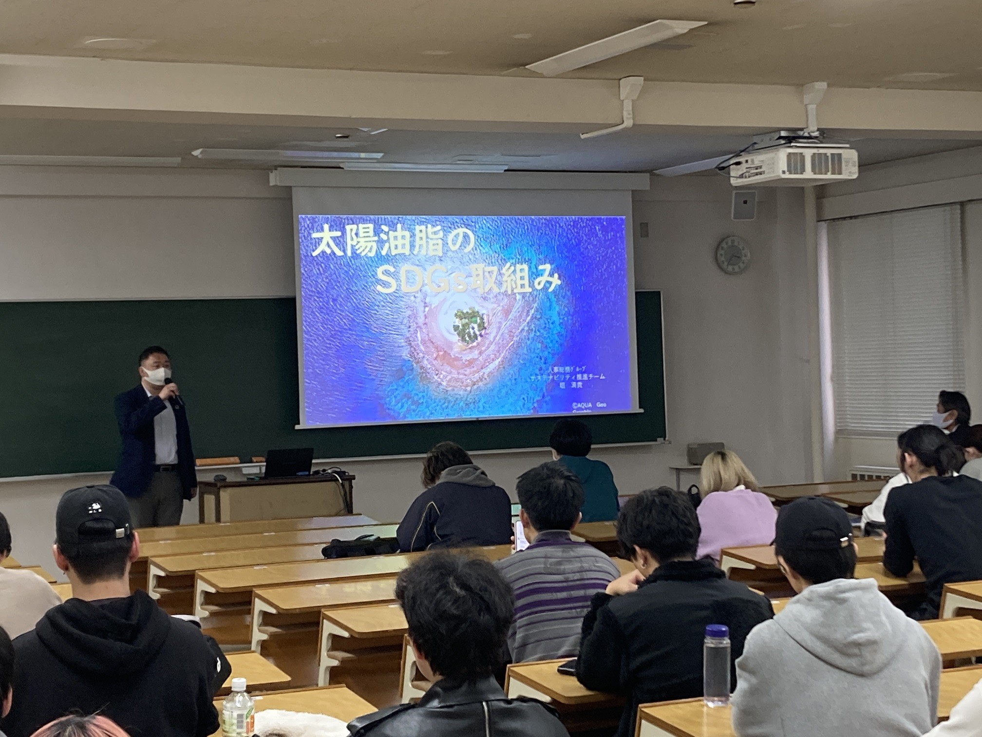 今回で6回目の寄付講座となりますが、学生の皆さまに太陽油脂の会社概要を始め、SDGs取組みなど多くの事を知って頂く場とご意見を頂ける機会を頂き、とても有意義な講座であると感謝しております。