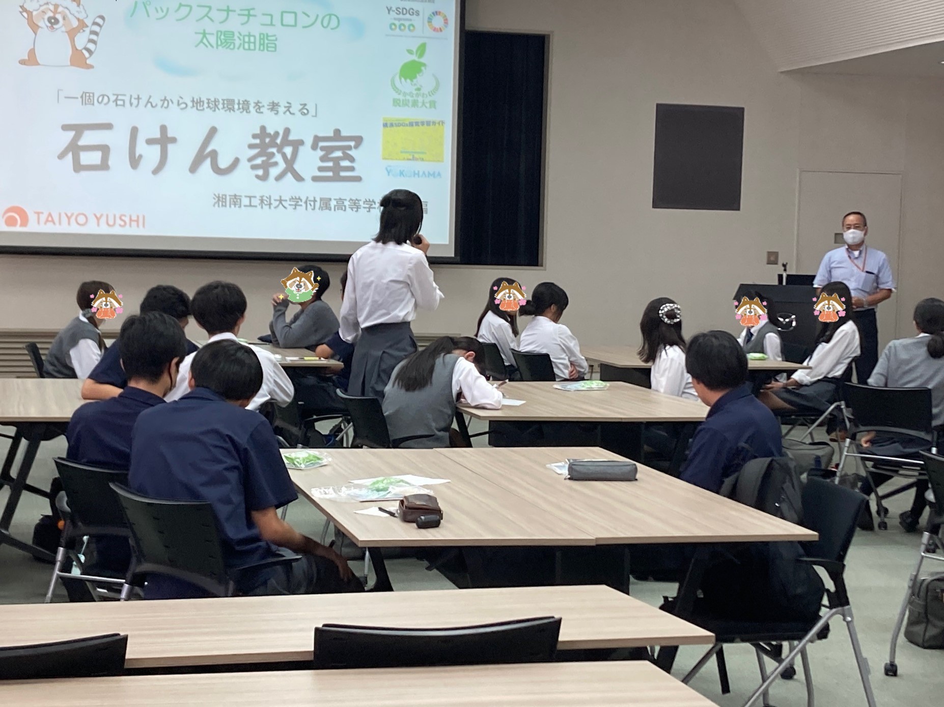 グループ毎に実施した石けんの働きや性質についての実験、こねこね石けん(オリジナル石けんつくり)など、どのグループも楽しそうに取り組まれており、生徒の皆さまの石けんへの理解やSDGs貢献活動の学びに少しでも貢献できたのであれば幸いです。