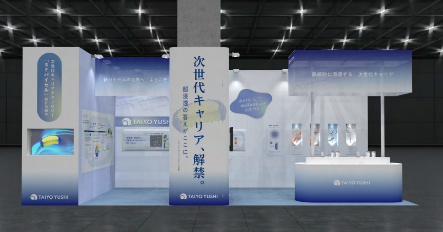 本展示会では、カネカ・サーファクチン(以下、SF)の特長をさらに進化させた、高い皮膚浸透性を有する微細キャリア製剤「バイセル(SFバイセル仮称)」をご紹介いたしました。